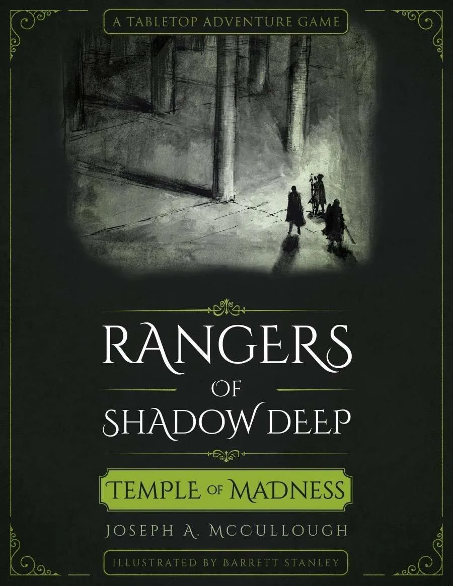 So, what is going to make this ‘Deluxe’, I hear you ask? Well, to start off, it’s getting top-notch production – traditional printing and binding, with a faux leather cover heat stamped with the artwork and text, and high-quality paper stock. The layout is being completely reworked, and the book will feature a dozen pieces of new artwork by Barrett Stanley. Additionally, I’m taking the chance to incorporate the character building elements (most notably the spells) from Temple of Madness into the main rulebook, so that all of the character building will be in one place. I am also updating or modifying a few of the rules that I, and others, have been playtesting. Finally, I have introduced a ‘challenge level’ for each of the scenarios in the book, which increases the difficulty of each scenario. This is for those that were finding the scenarios too easy for 3 or 4 players, for those who just like their games tougher, or for those who might want to play the scenarios again with higher-level rangers.
