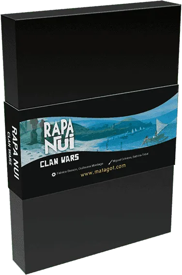 Gameplay Each game turn takes place in 3 phases. During the first phase, each player sends one of his figurines on the board, each in turn, until all the figurines have been placed. The sorcerer will decide the order of the next turn, and the villagers are placed on the board to become transporters or scupltor. Thanks to the number of sculptors present in the Quarry, each player collects Moais of different sizes. Moai or Pukao must be transported through a continuous chain of transporters, whether they are from your clan or not. But be careful, you offer resource to your opponents when you use their transporter! Once arrived at your destination, you can erect the Moai, to take the Ahu tile you can play at your tune, as well as one or more Resources depending on the size of the Moai. Styling your Moais will allow you to exchange resources to acquire Offering tiles. Atthe end of a round, if the number of ahu with no Moai is less than or equal to the number of players, the game ends,The winner is the player with the most victory points earned thanks to the Offering and Outstanding Offering tiles.