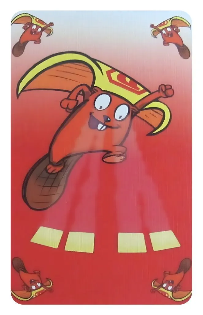 Biberbande is a card game for Ages 6 and up, the object of which is to improve your initial unknown 4-card hand so that you have a lower sum of cards than the other players. There are 66 cards in the deck, which consists of ranks 0-9 (four of ranks 0-8 and nine 9âs) and 3 different types of action cards (9 âExchangeâ, 7 âSpyâ, and 5 â2 X drawâ). Four cards are dealt face down to each player so that no player knows the values of her cards. The four cards are then arranged in a row and each player may briefly look at her outer two cards. A playerâs turn consists of drawing a card from the top of the draw pile or discard pile. If the player drew from the draw pile, there are several possible actions: If it is a number card, she may replace one of her face down cards with it (placing it face down) or she may simply discard it. If it is an action card, she may carry out the action or ignore the action. If a player draws the top card of the discard pile, she must replace one of her face down cards with it (placed face down). A player may knock at the end of her turn meaning that each other player has one more turn before the round is over. When the round ends, players turn over their cards and add up their values. The player with the lowest total value wins. Generally the game is played with as many rounds as there are players. Player interaction comes in the form of the action cards. The âExchangeâ card allows a player to exchange one of his cards with one of his opponents. The âSpyâ card allows a player to look at one of his own cards. Finally the â2X lookâ card allows a player to look at the top card of the draw pile, then keep it or throw it away. If she throws it away, she must use the next card in the draw pile.