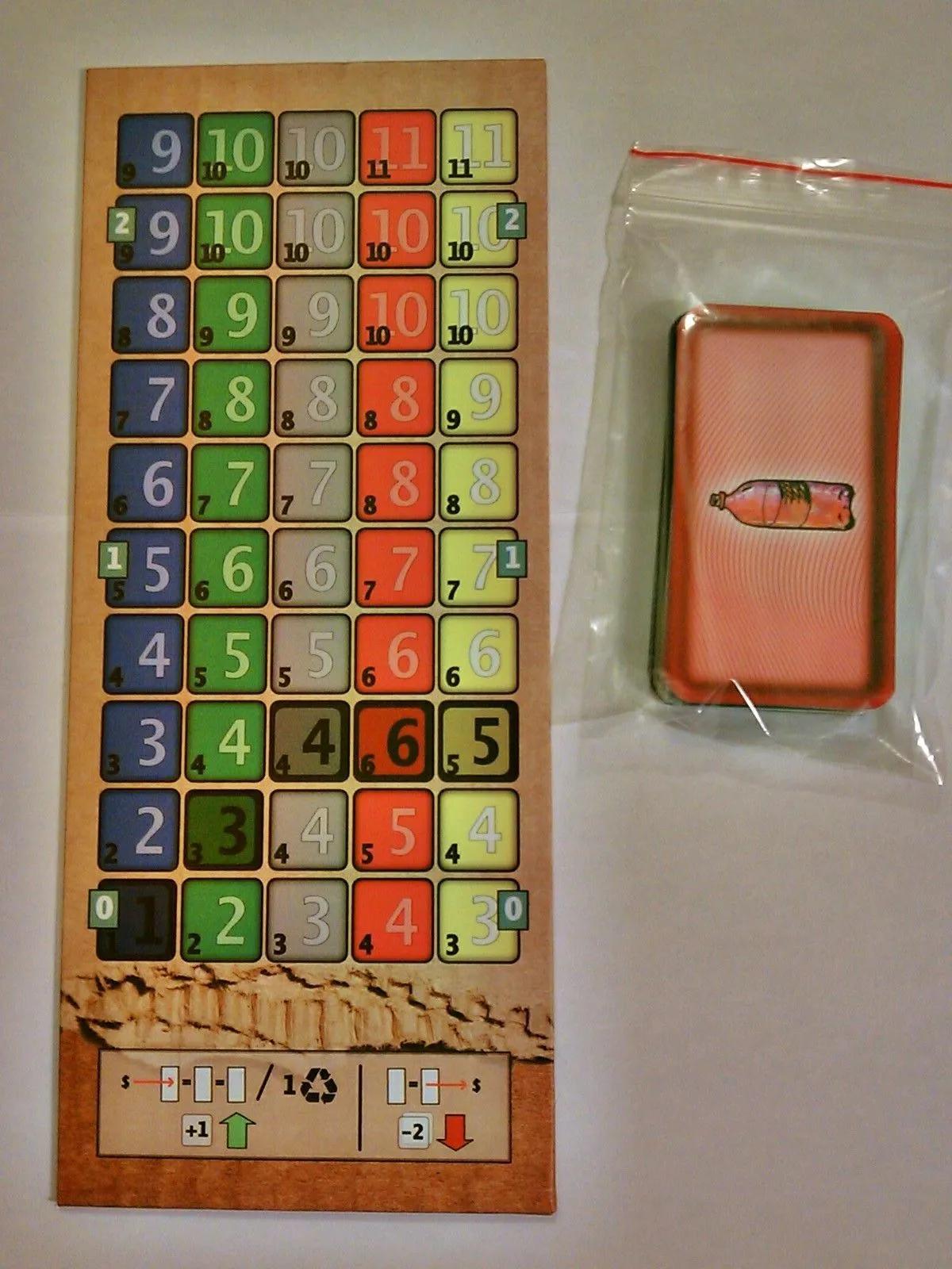 Recycle, Critical Times is a new game based on the original Recicle. Several changes were implemented, from the rules to the art design. Now, players may hire designers and merchants to improve their Cooperative, may buy collecting trucks for organic material and install new kinds of recycling equipment giving the game a new strategy felling. Players begin without money and loans are permitted, although times are critical and the interests are high. The basics of the original are kept. Collectors move around the board collecting from paper, plastic, UHT, metal and glass tiles. They must take them to the Cooperative. In the new game, the street Collectors may also sell tiles to a public Warehouse where they can make some money before the Cooperative gets the materials to recycle.