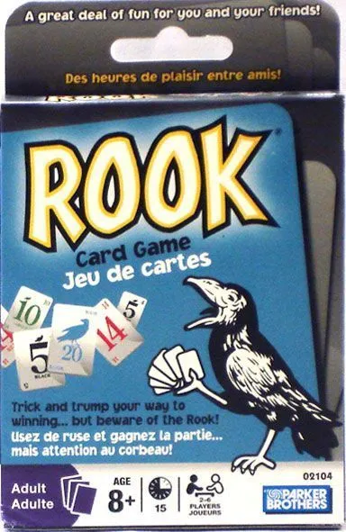 Rook is a trump-based trick-taking game played with a deck of Rook playing cards. It was first sold in 1906 by Parker Brothers. The Rook deck is similar to a standard deck of cards, but has only numbers from 1-14 in four colors (no face cards or card suits (spades, etc.)).