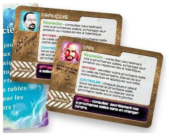 ROOM 25 Double Rush takes place in the futuristic game show universe known to ROOM 25 players. Conceived by François Rouzé, the designer of the ROOM 25 series, this microgame (wallet-sized game) from Matagot pits two players against each other as they explore a series of special-effect rooms from their (and their opponent’s) decks.