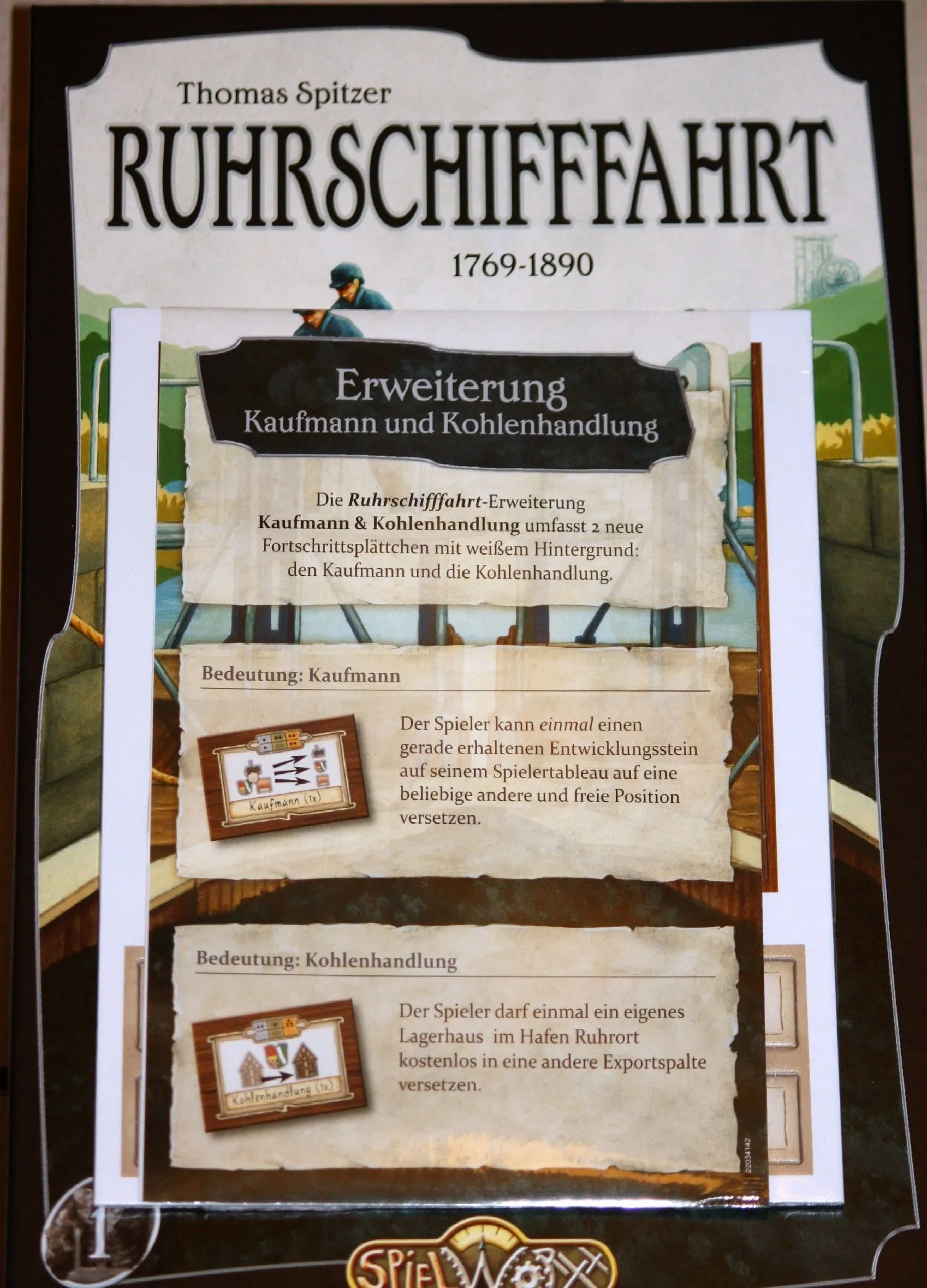 In Ruhrschifffahrt 1769-1890, 2-4 players transport and sell coal along the Ruhr river in Germany as profitably as possible. Progress markers are helping them. The position of each player’s Ruhr barge is most important; the player furthest upriver is allowed to conduct his action first in each phase of a game turn.