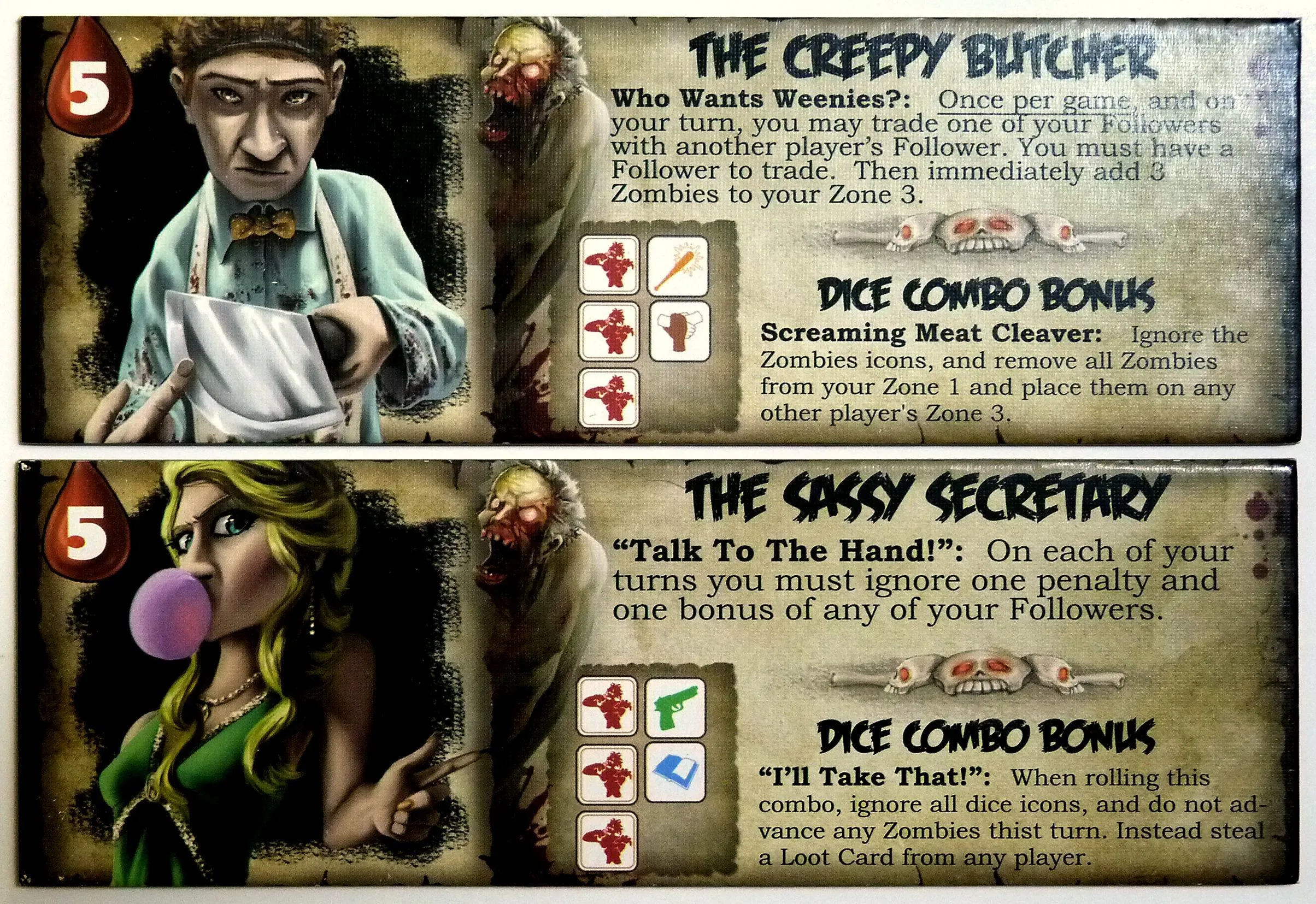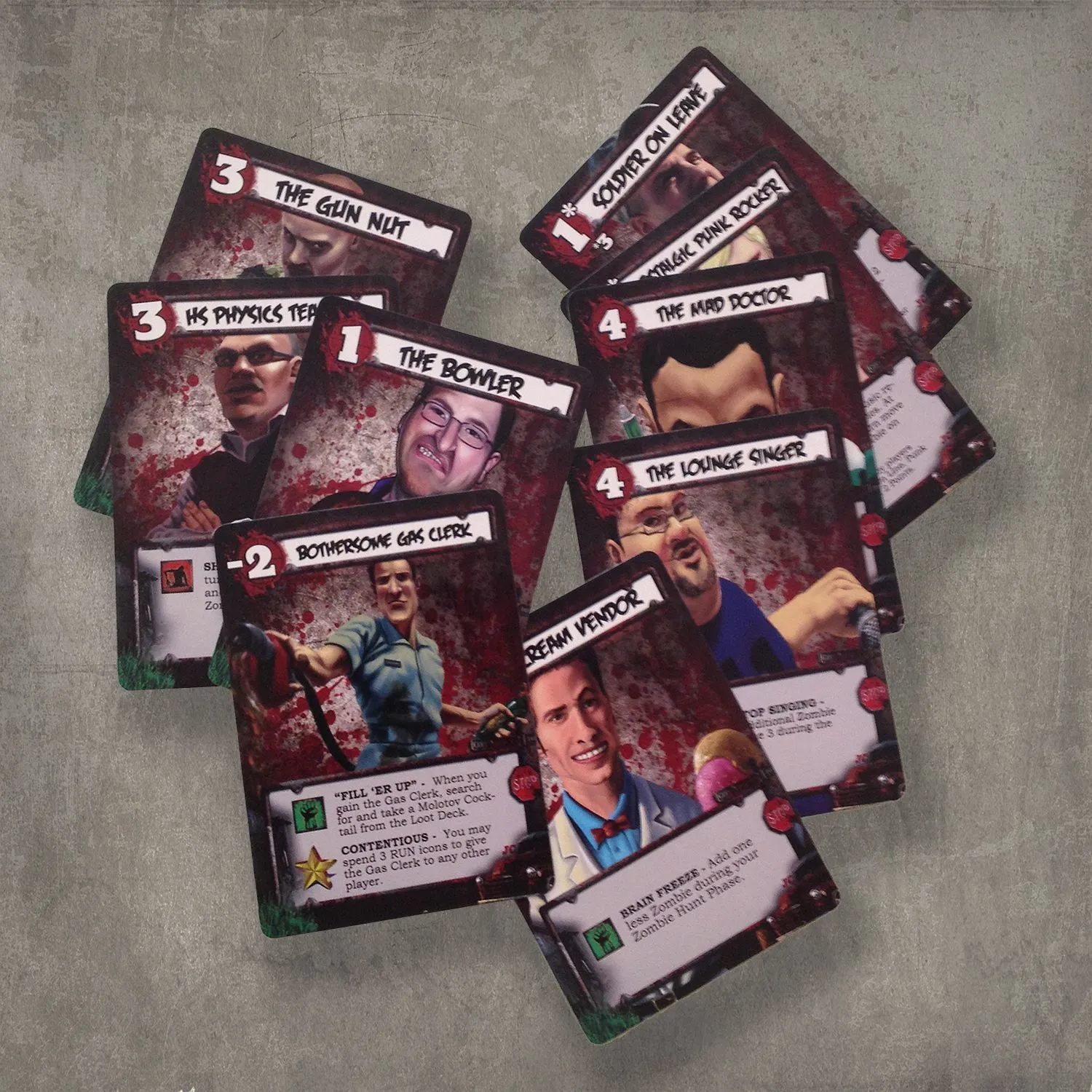 The undead hordes are back! But this time they’re not miniatures shambling around a modular board - the zombies are coming straight for you! As in most zombie games, you represent a unique character with your own character traits, except in Run, Fight, or Die! you will also have your own individual board with zombies you alone will encounter. Zombies move closer to you every round. You run from location to location, searching for weapons and survivors in a desperate attempt to stay alive. Survivors may bring new skills to help you in your desperate fight for survival, or in some cases, new challenges to overcome. In either case, every survivor provides you victory points. The game ends either when one player finds five survivors and declares the last round, or when a player reaches the town line (and the total Followers in play meets a minimum), or if a player gets bitten and turns. Be careful, some followers may turn against you, while others can slow you down. When it comes right down to it, the choice is simple: Run, Fight, or Die!