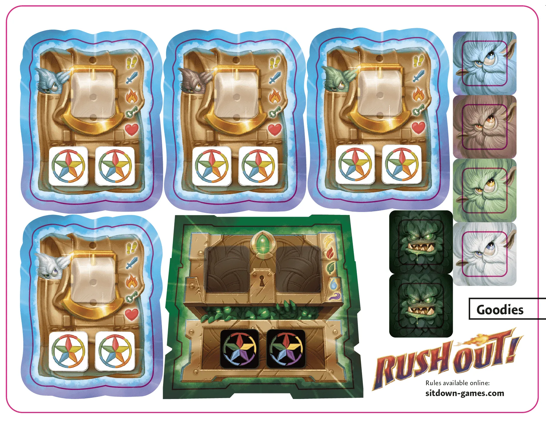 Rush Out ! est un jeu de rapidité asymétrique et trépidant pour 3 à 5 joueurs.2 à 4 joueurs tentent de s'échapper pendant que le joueur sorcier lance des sorts contre eux.