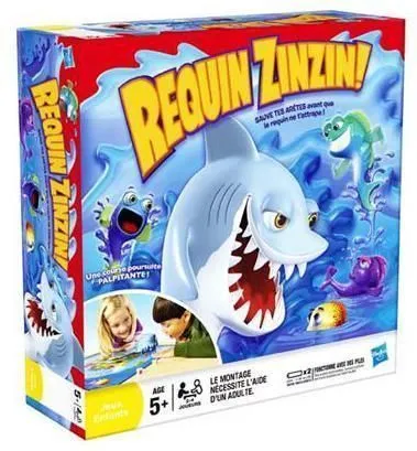 Roll the dice and move your fish. But watch out! If you’re not fast enough, the motorized shark creeps up behind and swallows your fish. You’re out of the game. The last fish to escape the shark’s bite wins.