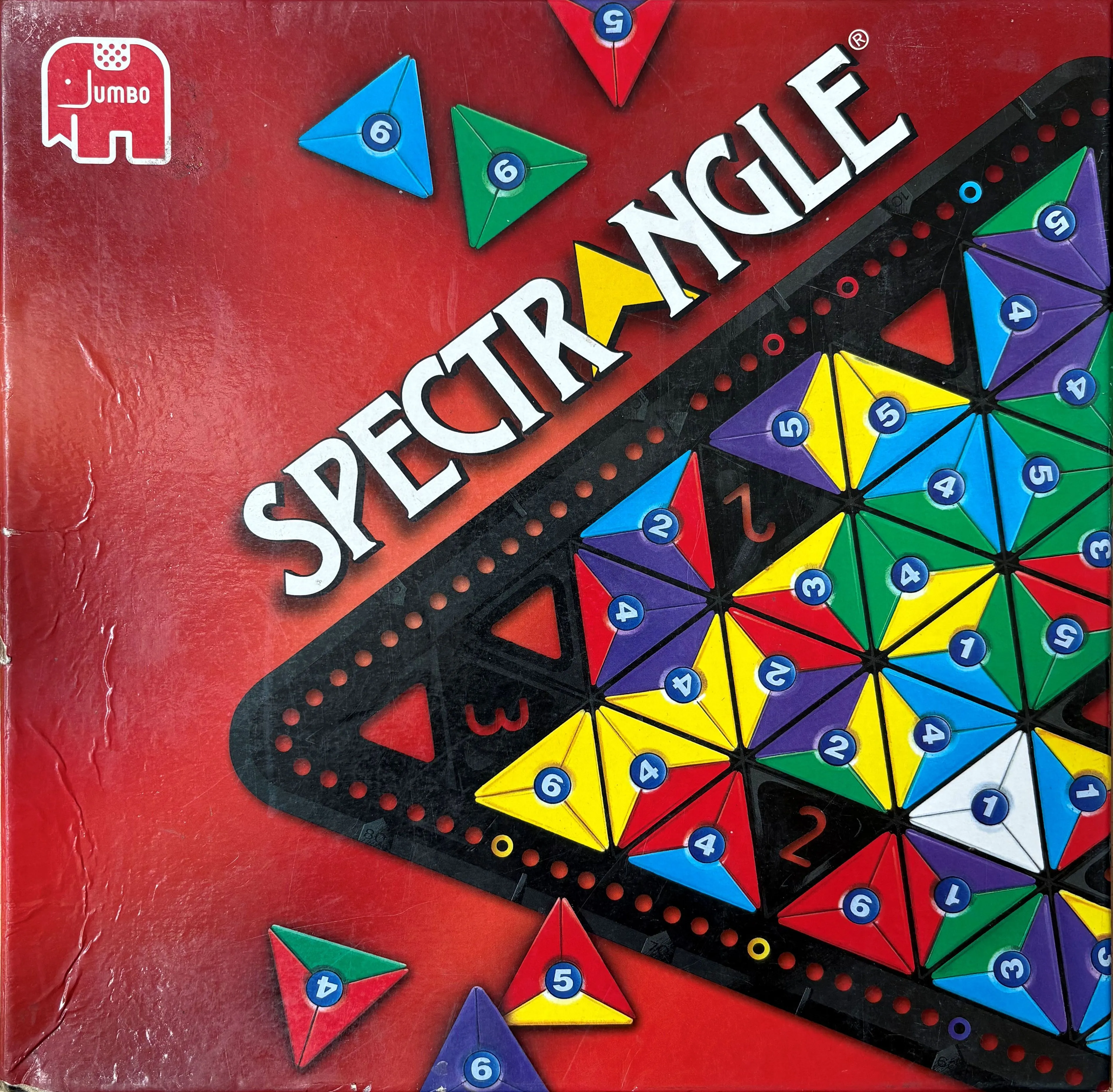 The game contains 36 colored triangles, with all kinds of combinations. Triangles with fewer colors score more. All triangles must be placed adjacent to already placed triangles. You score by multiplying the number on the triangle with number of adjacent sides and the bonus point at the bottom of the board (if more then 1).