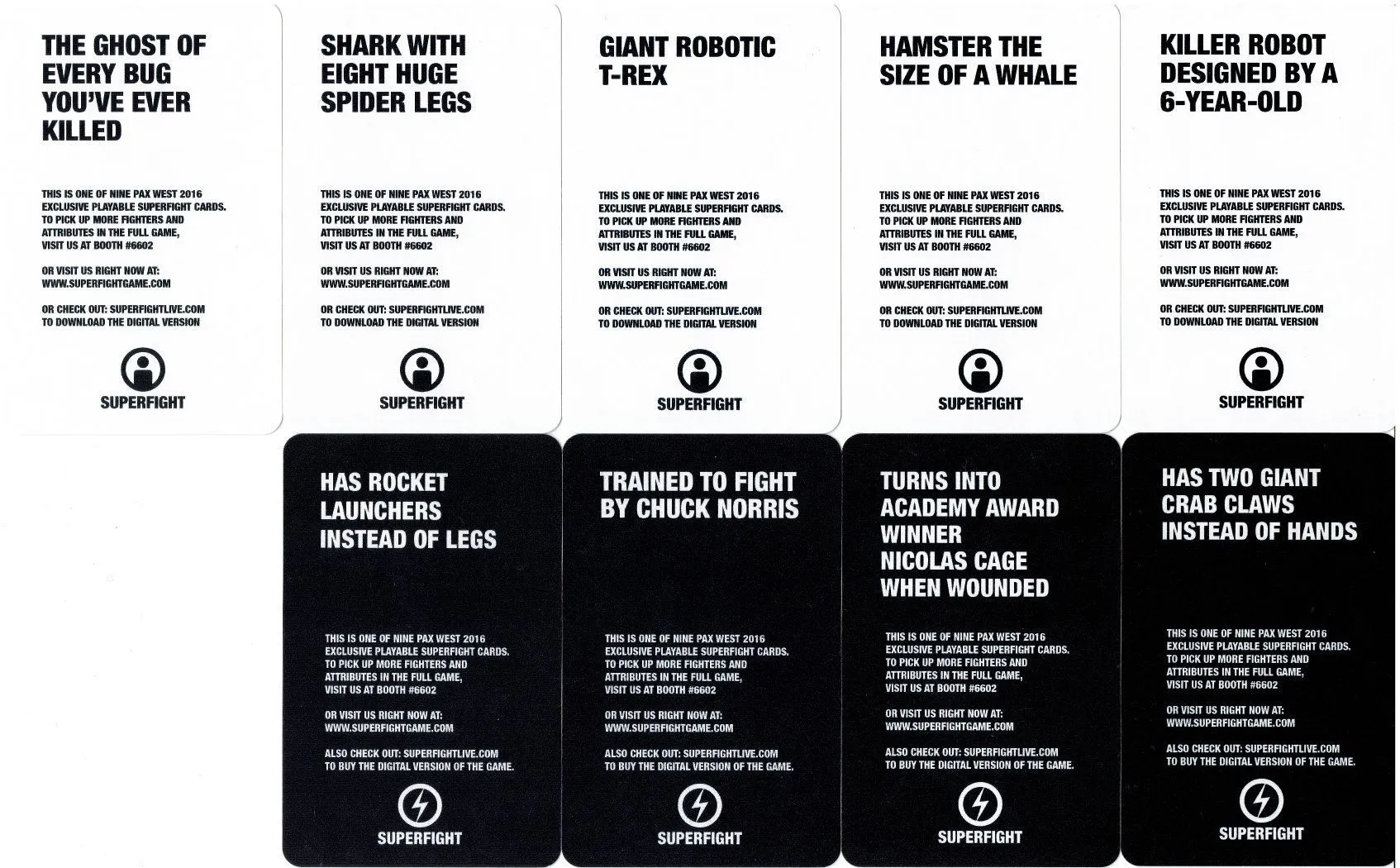 Note: Superfight went through a major reprint in late 2014. The rules and about 30% of the cards were refined to improve the game after it sold out of its original print runs. The Cards Against Humanity/Apples to Apples mechanism has been replaced by a table vote and one-one one battles, but the battle royale and villain rulesets keep the old single-judge mechanism if the table prefers it.
