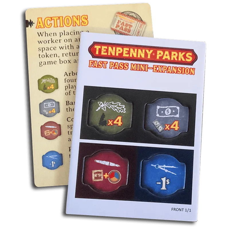 Une partie de Tenpenny Parks se joue en cinq tours, appelés mois. Chaque mois, les joueurs placent à tour de rôle des ouvriers sur le plateau de jeu pour effectuer des actions telles que l’abattage d’arbres, la construction de concessions et d’attractions, et l’achat de propriétés supplémentaires afin de rendre leur parc à thème en pleine expansion aussi attrayant que possible pour les visiteurs et ainsi gagner des jetons de points de victoire.