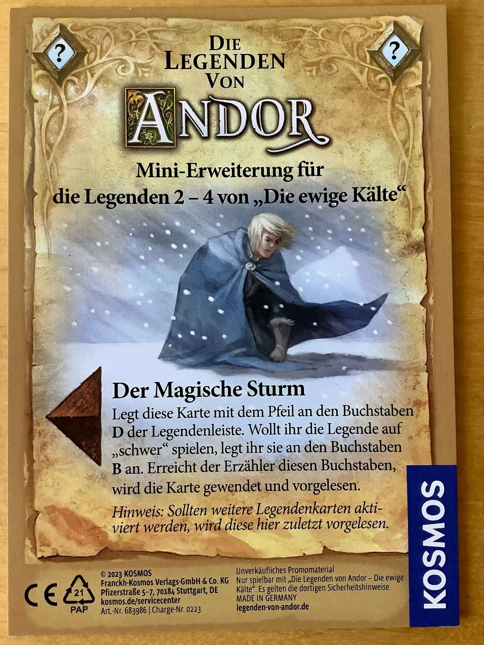 In four epic legends in The Legends of Andor: The Eternal Frost, a team of 2-4 heroes embarks on an exciting journey to a strange land beyond the mountains. On a new, double-sided game board, you’ll find loyal allies and face unexpected dangers. Together you will find out who is behind the magical threat of the eternal cold!