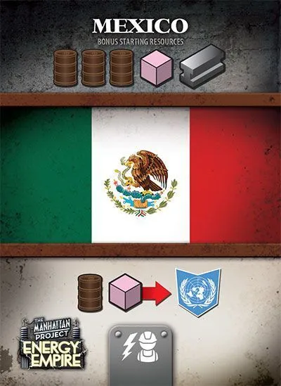 From the ashes of war, nations rise to power in the atomic age. Each player takes control of a nation struggling for power in the latter part of the 20th century. They build up their nation’s industry, commerce, and government by acquiring resources, building structures, and tapping sources of energy. The price of oil is going up, and nuclear energy is the wave of the future. The Manhattan Project: Energy Empire is set in the same “universe” as The Manhattan Project, but it’s a standalone game, not an expansion.