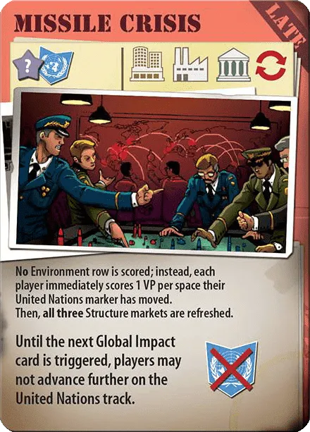 The major threat in Energy Empire is not war, but uncertain global impacts, that result from side effects of industrialization and pollution. Many actions come with a cost. So, as nations become more industrious, they also increase the amount of pollution in the environment. Careful use of science can mitigate the harmful effects of industry, and can also help avert global crises.