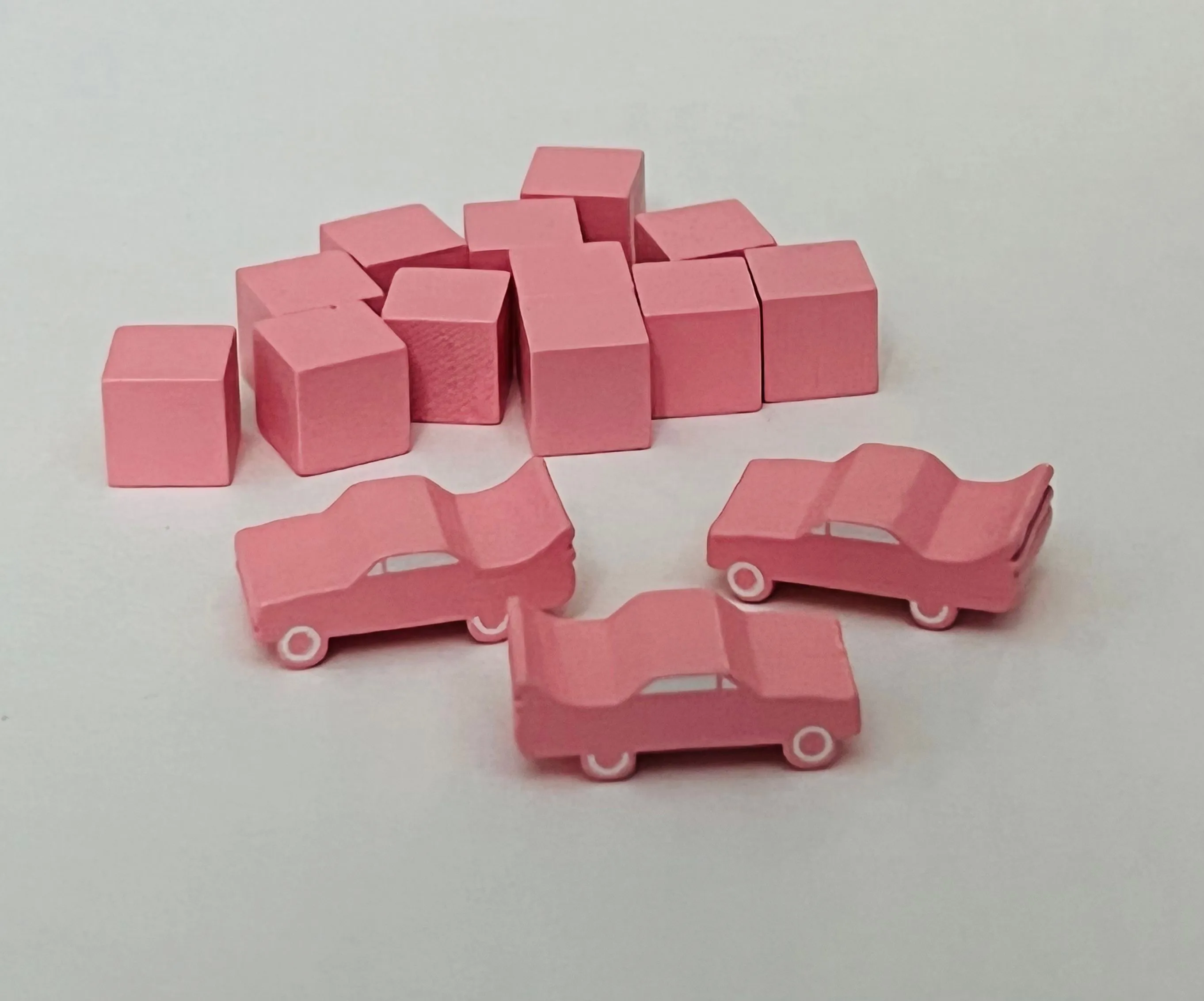 The Mother Road is a press-your-luck race across Route 66 for 2-4 players. The player pieces are wooden cars representative of classics found on Route 66 in days gone by – a canary yellow 60’s Mustang; a pale blue Thunderbird from the 50’s (with portholes); a cherry red Ford pickup truck (featured in the Eagles’ first hit “Take It Easy”); and a black Harley-Davidson motorcycle.