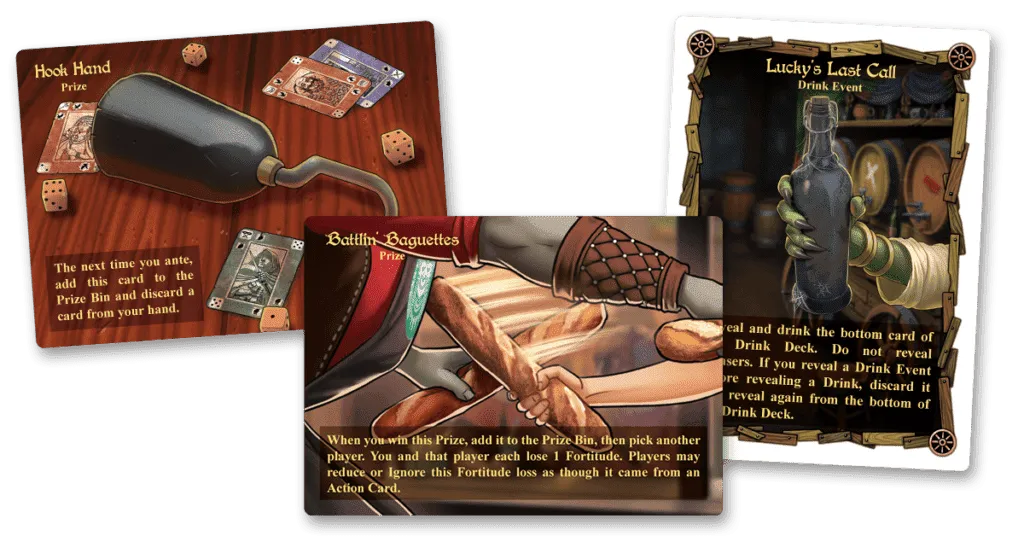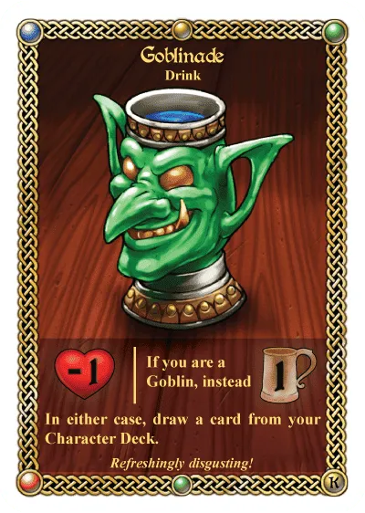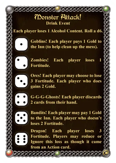 In Red Dragon Inn, you and your friends are a party of heroic, fantasy adventurers. Youβve raided the dungeon, killed the monsters, and taken their treasure. Now youβre back, and what better way to celebrate your most recent victory than to spend an evening at the Red Dragon Inn. You and your adventuring companions will spend the night drinking, gambling, and roughhousing. The last person who is both sober enough to remain conscious and shrewd enough to hold onto his Gold Coins wins the game.
