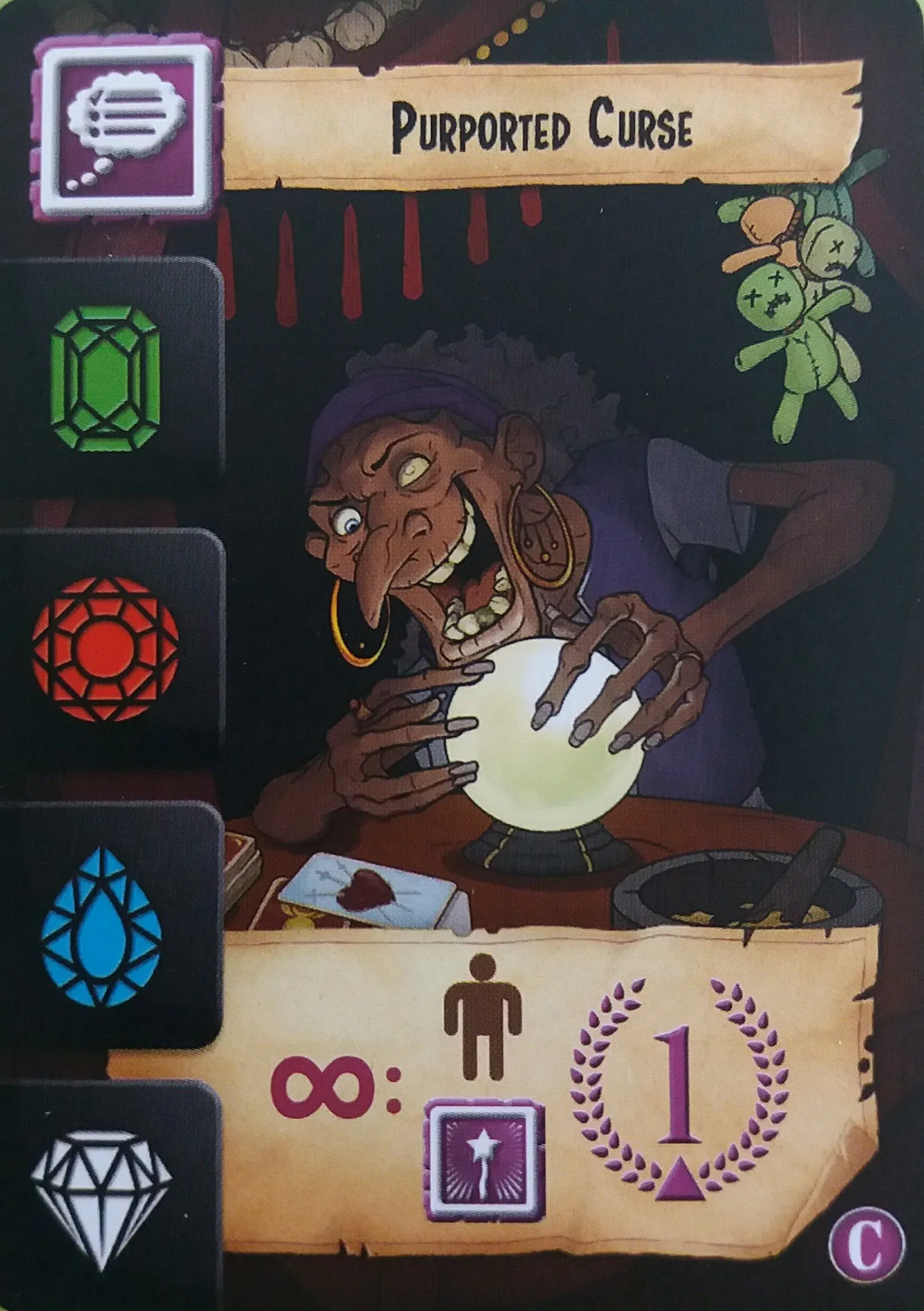 When the display of available cards to purchase can’t be refilled, the game ends. Players with the most henchmen and gold score bonus points, then the player with the most notoriety in cards, tokens, and bonuses wins!