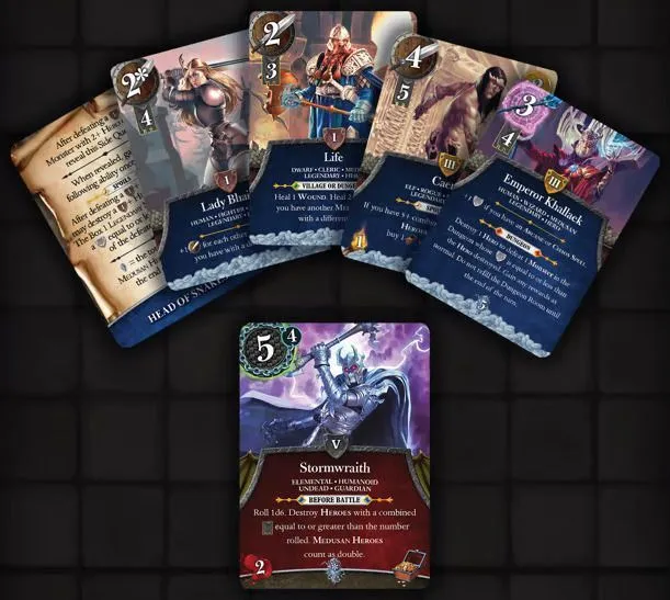 The dungeon deck is created by combining several different groups of monsters together. Certain groups of monsters may be more or less susceptible to different hero types, so players have to take this into account when they choose what to buy.
