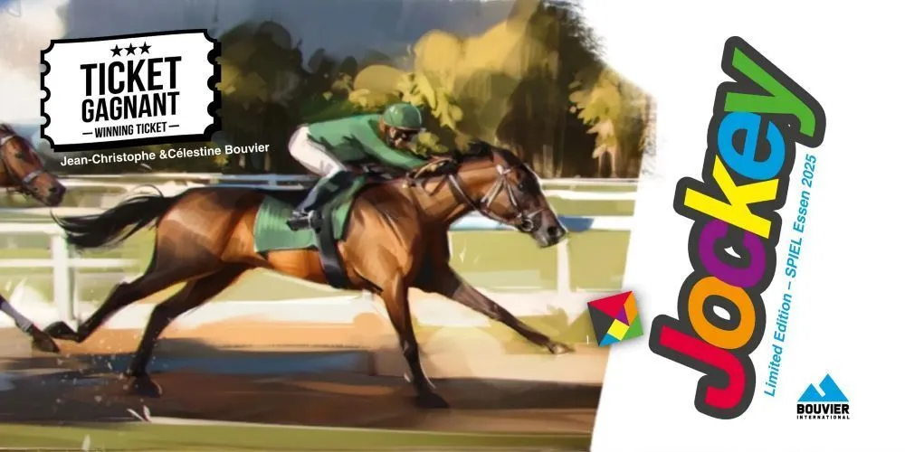 Avec ce jeu palpitant, vous tenterez de mener sur le podium les chevaux que vous aurez pronostiqués, en utilisant astucieuseusement vos cartes mouvement et en profitant des déplacements des chevaux … concurrents ! Le cumul des points acquis à la fin de chaque course désignera le meilleur pronostiqueur de la table. Ce jeu est un concentré de passion et d’authenticité car conçu avec Célestine, jockey plusieurs fois victorieuse. Le 21 août 2021, de retour de l’hippodrome de Montier-en-Der où elle venait de remporter sa cinquième victoire, avec Zita des Echanault, nous est venue l’idée de Ticket Gagnant : nous y avons mis tous les ingrédients de la course hippique pour inventer de nouveaux mécanismes pour votre plus grand plaisir ludique. Courses de plat, trot, haies, steeple chase, sulkies, photo-finish, pronostic, gagnants, placés, perdants, trio ordre, désordre, noms de chevaux authentiques sur lesquels Célestine a remporté de nombreuses victoires : tous les ingrédients des courses hippiques sont dans Ticket Gagnant !