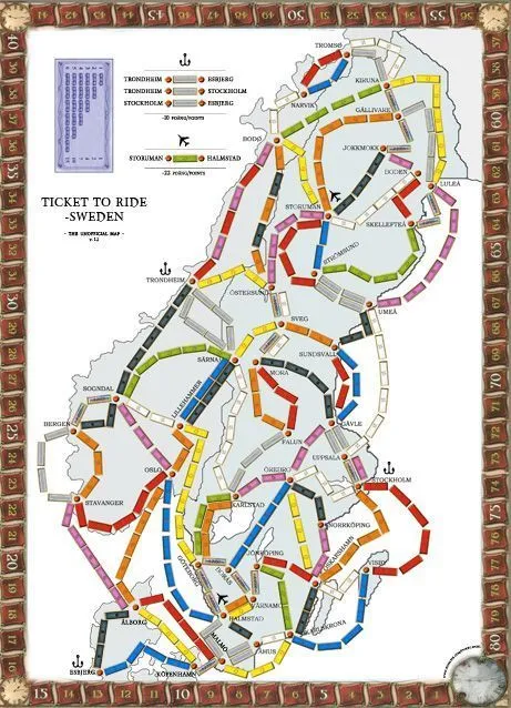 Ce nouvel opus reprend les clés du succès de la série. Le jeu reste simple, très bien illustré et facile à apprendre. Replongez dans l’âge d’or du chemin de fer et lancez-vous à la conquête du rail en Scandinavie. Tentez de prendre le contrôle du réseau ferroviaire nordique en reliant un maximum de villes entre elles. Commencez la partie en piochant vos objectifs de destination et partez à l’assaut des chemins de fer. Les objectifs représentent les liaisons entre deux villes que vous devrez impérativement établir. Ils sont très importants pour le déroulement de la partie, car s’ils ne sont pas remplis à la fin de la partie, vous obtiendrez un malus par objectif non respecté. Un joueur prend le contrôle d’une ligne en utilisant des cartes de la même couleur que la voie. Une fois contrôlée, la ligne appartient au joueur et plus aucun participant ne peut en prendre le contrôle.