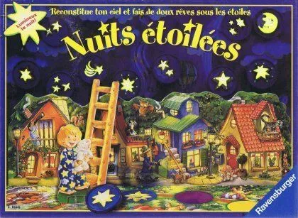 When the game is done, hang the rest of the stars, turn out the lights, and enjoy the glow-in-the-dark panorama. A good first game for very young children, and a great “going-to-sleep” game for the end of a long day.