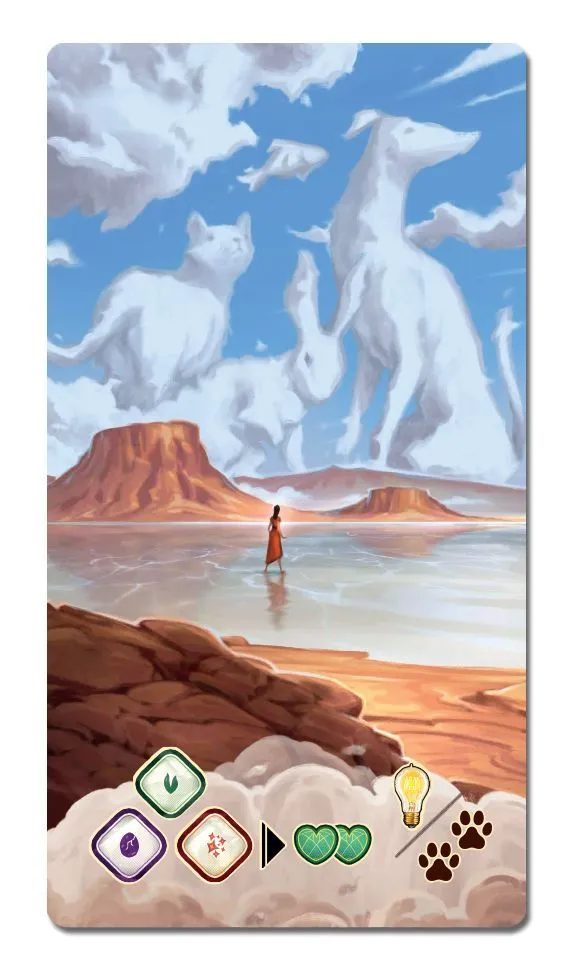 To treat your clients and interpret their dreams, you must work with a supply of Insight resources, which you’ll manage on a multi-level dial. As you work through surface-level Manifest dreams into deep-seated Latent dreams, these Insights will help your clients reach catharsis. This is represented by lifting transparent layers from the client cards—unlocking their ongoing special abilities and end-game scoring opportunities.