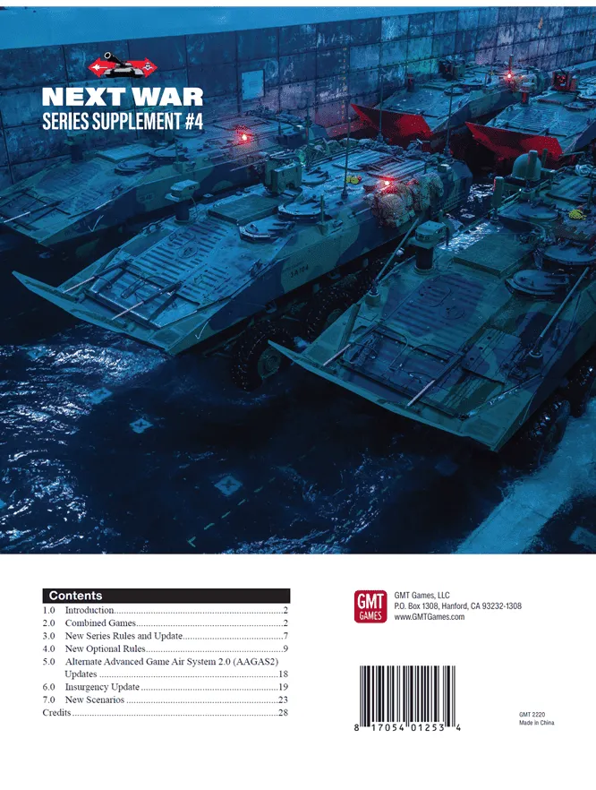 Next War : Vietnam est le cinquième jeu de la série Next War. Ce jeu renvoie l’action en Asie et dans la poudrière qui entoure la mer de Chine méridionale. Depuis plus de 2000 ans, les Chinois tentent de dominer leurs voisins du sud. La dernière fois, c’était en 1979, lorsque la RPC a envahi le Vietnam en réponse à l’invasion et à l’occupation du Cambodge par ce dernier. Cette guerre a duré environ quatre semaines avant que la Chine ne se retire, ayant déclaré sa mission accomplie. Aujourd’hui, les anciens ennemis sont de nouveau à l’œuvre. En s’attaquant aux zones riches en ressources de la mer de Chine méridionale, les deux parties se sont lentement dirigées vers le précipice de la guerre. Ce jour est maintenant arrivé. Cette fois, les Chinois n’ont pas l’intention de mener une expédition limitée et punitive ; ils ont l’intention d’écraser une fois pour toutes la menace naissante à leur frontière sud et de prouver, par la force des armes, que la mer de Chine méridionale leur appartient. En s’appuyant sur les règles navales présentées dans Next War : Taiwan, les joueurs auront l’occasion de se battre une fois de plus pour les îles Spratly et Paracel, ainsi que pour la jungle montagneuse du Nord du Vietnam. Si les États-Unis s’impliquent, ils pourraient finalement débarquer des troupes dans le port de Haiphong et marcher sur Hanoi, bien qu’ils soient une force de secours et un allié de leur ancien ennemi. La question est de savoir ce que fera le reste de la région. Va-t-il se joindre à un camp ou rester neutre ? Next War : Vietnam permettra également aux joueurs de jouer à un jeu combiné avec Next War : Taiwan, et, avec les règles de ce dernier jeu, d’ajouter à NextWar : Korea aussi pour ce qui équivaudrait au Front du Pacifique de la troisième guerre mondiale. Il n’est PAS nécessaire de posséder une série Next War précédente pour jouer à Next War : Vietnam.