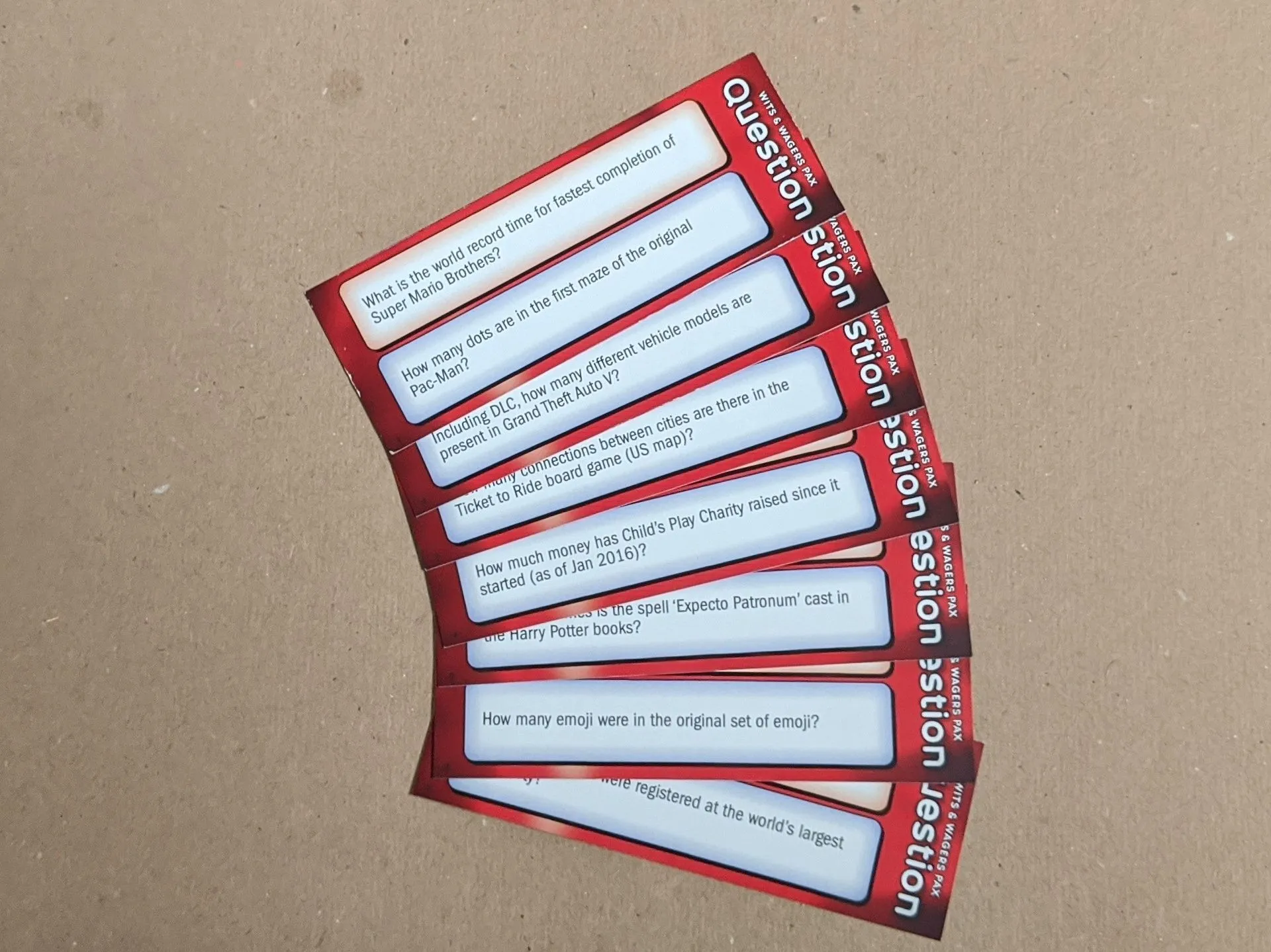 Wits & Wagers Party, a simplified version of the most award-winning party game in history, comes with 250 of the best questions from the out-of-print Wits & Wagers: Expansion Pack 1. These questions were chosen because they are lighter and more fun than the questions from the original Wits & Wagers, making this the best edition to play with your non-gamer friends and family. The poker chips in this edition are twice as heavy and thick as those from the original W&W.