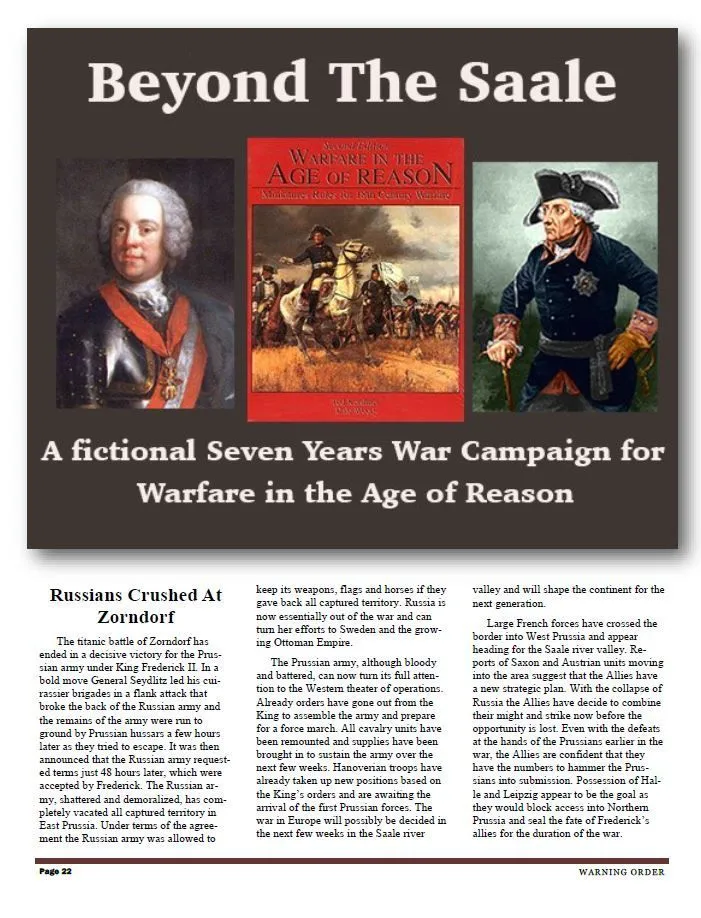 Warfare in the Age of Reason has: – Complete and tactical, campaign and siege rules. – Army lists for the Wars of Frederick the Great, the Marlburian Wars, the Great Northern War, the French and Indian War, the Jacobite Rebellions, Clive’s Conquest of India, and the American Revolution. – 102 tactical maps. – A campaigning map of Europe, India, and the American Colonies.