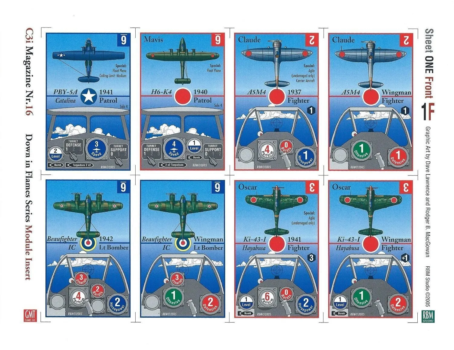 Volume III in the Down in Flames card game series moves to the Pacific Theatre of Operations in WWII. Players will recreate the first six months of furious aerial combat between the might of Imperial Japan and the surprised forces of the United Kingdom and the United States.